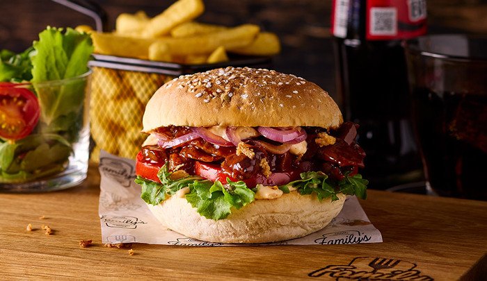 Geniet van de Family's Favorieten burgers. Kies een rundvlees, kip of vegetarische variant en combineer met een portie frites en een drankje. Een heerlijk Family gerecht die goed is voor elk moment!