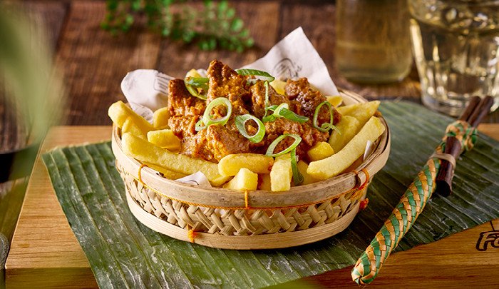 Proef de Frites Rendang, knapperige frites met kruidige Indonesische Rendang. Wellicht een nieuwe Family favoriet, bestel snel en haal je bestelling af voor thuis.